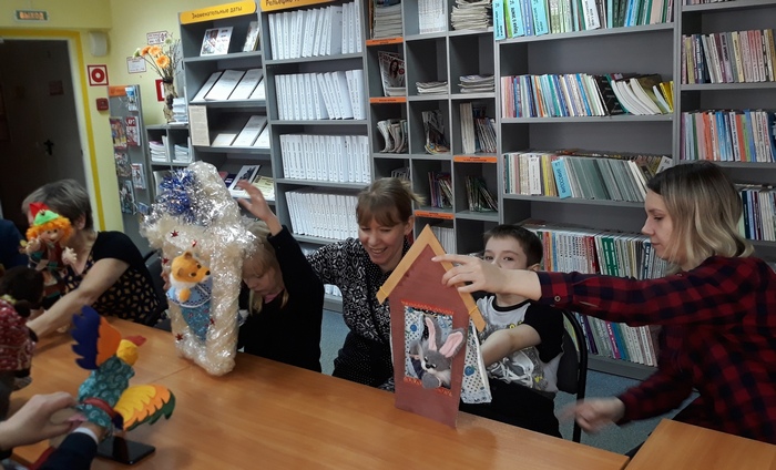 Дети и родители клуба «Совёнок» познакомились с героями сказки «Заюшкина избушка», изготовленными в виде кукол-перчаток добровольным помощником библиотеки Елизаветой Евгеньевной Шкандюк.